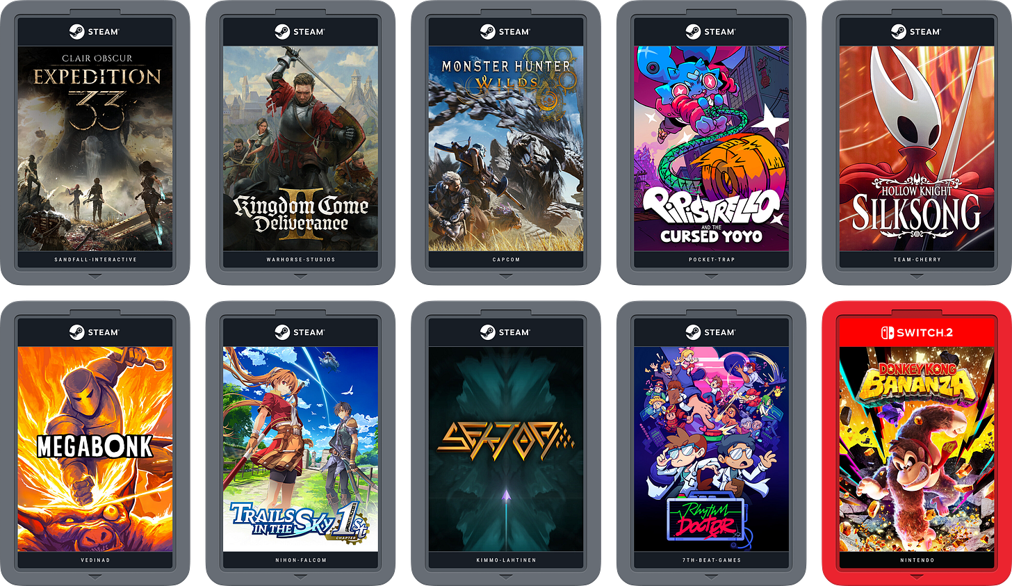At the beginning of 2025, I stupidly made a New Year’s resolution to finish every game I started. Instead, I pinball’d through more games than ever—the final count was over 75 on Steam alone—and, though I’m not a math guy, I estimate an 8% completion rate. Definitely not my proudest stat.